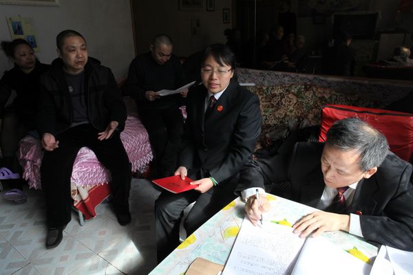 黑河市爱辉区法院为失明当事人上门开庭