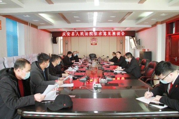 1月8日下午,庆安县法院邀请部分人大代表、政协委员、企业家代表召开征求意见座谈会,征求他们对绥化两级法院领导班子和班子成员的意见和建议。座谈会上,院党组成员、副院长王树文向与会人员介绍了绥化两级法院2020年审判执行工作情况和统筹做好新冠肺炎疫情防控工作情况,介绍了两级法院班子学习贯彻习近平新时代..