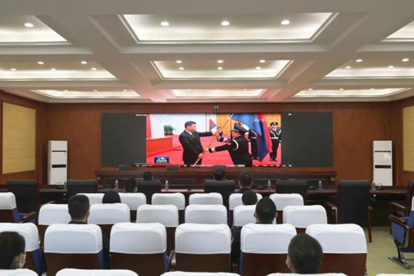 9月4日,黑河中院组织全体司法警察及辅警再次收看中国人民警察警旗授旗仪式。中国人民警察警旗旗面由红蓝两色组成,红色为主色调,警徽居旗帜左上角。警旗是人民警察队伍的重要标志,是人民警察荣誉、责任和使命的象征。通过集中观看授旗仪式,进一步提升全体法院干警的使命感和服务宗旨,大家结合《最高人民..