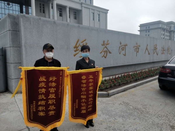 近日,申请执行人崔某捧着两面印有“五年积案破冰执行终结 睿智法官巾帼不让须眉”“好法官履职尽责 战疫情执结积案”的鲜红锦旗来到绥芬河市法院,专程向执行法官何艳表示感谢。“感谢法官们在疫情期间秉公执法、高效办案,帮我追回了三十多万元。”2015年,申请执行人崔某因被执行人绥芬河某物业管理有限公司拖欠..