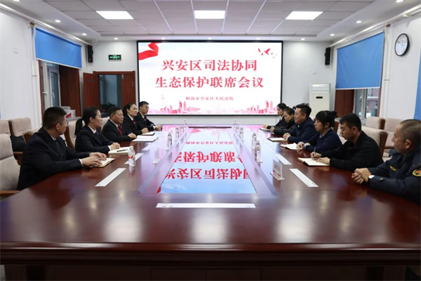 近日,为进一步推动辖区生态环境保护和修复,鹤岗市兴安区法院联合区检察院召开兴安区司法协同生态保护联席会议,区住建局、区城管局、区农业农村局、峻丰村、峻德村等相关部门应邀参会。会议解读了《关于在生态环境和资源保护领域开展公益诉讼劳务代偿工作的意见》文件内容,介绍了文件制定的背景、意义,与会单位..