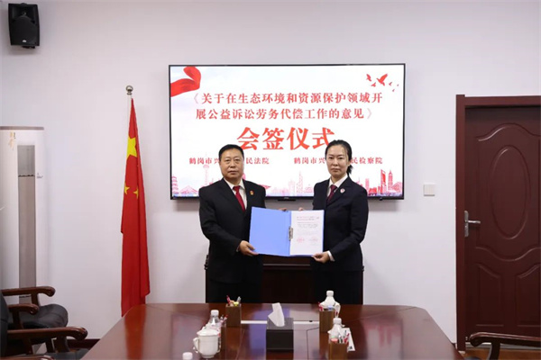 以法治力量守护绿水青山,推动辖区矿山整治和修复,让矿区披上“生态绿衣”。近日,鹤岗市兴安区法院与鹤岗市兴安区检察院联合会签了《关于在生态环境和资源保护领域开展公益诉讼劳务代偿工作的意见》。该意见对生态环境和资源保护领域刑事附带民事公益诉讼案件中劳务代偿适用的范围、原则、协助执行单位的选定、劳务代偿..