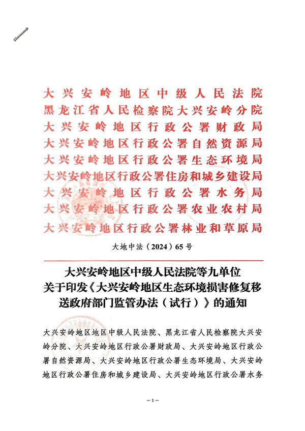 大兴安岭中院:九家单位联合发布《大兴安岭地区生态环境损害修复移送政府部门监管办..
