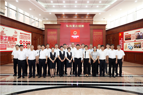 7月26日,黑龙江省公安厅党委副书记、常务副厅长吴刚率领省厅及直属机关党务工作者45人到省法院参加“公众开放日”活动。省法院党组副书记、常务副院长王中明,党组成员、副院长姚绪庆陪同参观。在党建大厅,大家在讲解员的引领下,回顾了革命历史,学习了革命先烈对党忠诚、艰苦奋斗的精神,齐声合唱《没有共产党就没有新中国》,重温入党誓词。大家继续参观了科技法庭、法官监督墙、院史馆、新闻中心等场所。省公安厅刑侦总队副总队长曹华在留言卡中写到:“牢记使命砥前行,公正执法献忠诚。”在数字图书馆,大家观看了黑龙江法院网演示,对省法院文化建设和新媒体建设给予高度评价,对考勤管理和法官监督平台的好做法称..