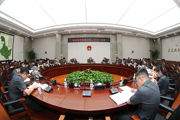 7月25日,省法院召开党组扩大会议,传达学习贯彻中央政法委政法领域全面深化改革推进会和最高法院全国法院贯彻落实政法领域全面深化改革推进会精神,研究贯彻落实措施。省法院党组书记、院长石时态要求,要认真学习贯彻会议精神,把思想行动迅速统一到会议部署要求上来,突出重点,扎实推进,确保各项改革任务在全省法院落地见效。石时态强调,要切实提高政治站位,坚持把司法改革置于党的绝对领导之下。坚持以习近平新时代中国特色社会主义思想统领全省法院各项改革,全面贯彻落实习近平总书记关于深化改革特别是政法改革、司法改革的一系列新理念新思想新战略,强化“四个意识”,坚定“四个自信”,做到“两个维护”,始终确保改革正..