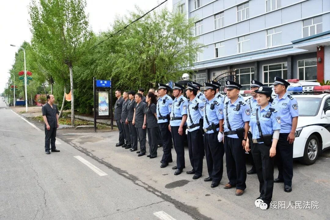 6月13日上午6点30分,绥阳人民法院参与“惩赖行动”的执行干警、司法警察集合完毕,整装出发。