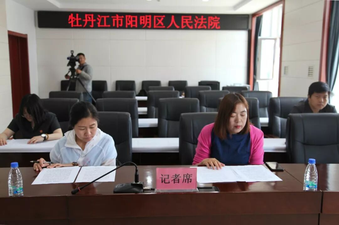 为提升广大人民群众对法院工作的知悉度、满意度,展示法院工作,进一步扩大宣传,6月20日下午,阳明区法院召开了刑事、执行新闻发布会,向全社会通报了扫黑除恶专项斗争、执行工作阶段性成果及下步工作打算。牡丹江市电视台、牡丹江晨报等新闻媒体记者参加了此次新闻发布会。