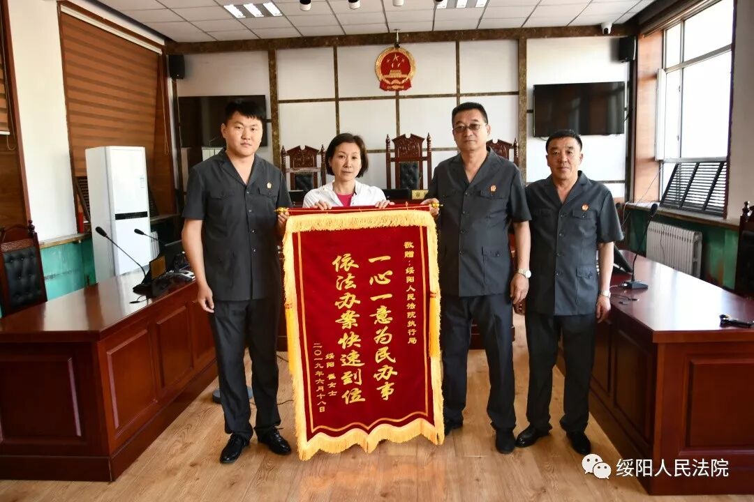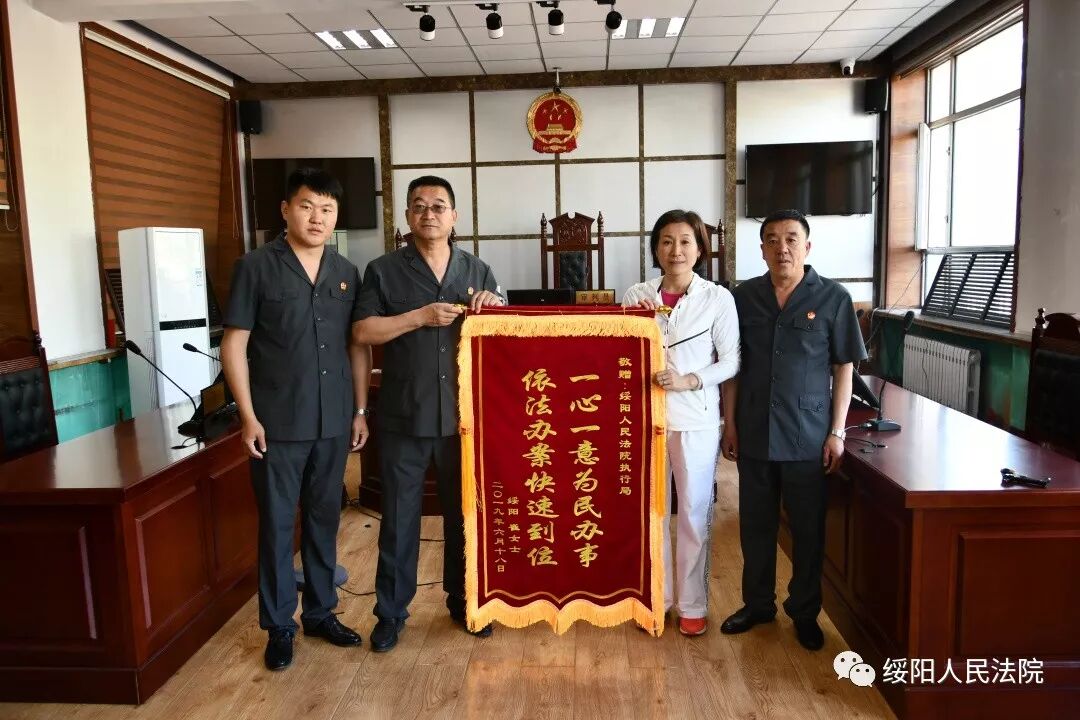6月24日上午,申请执行人崔某带着一面锦旗来到绥阳人民法院专程感谢执行法官与干警们。绥阳人民法院于6月13日开展的“惩赖行动”切实提升了老百姓的获得感、幸福感,让老百姓感受到全省法院真正在深入践行“让老百姓在全省法院打官司不求人”的庄严承诺。