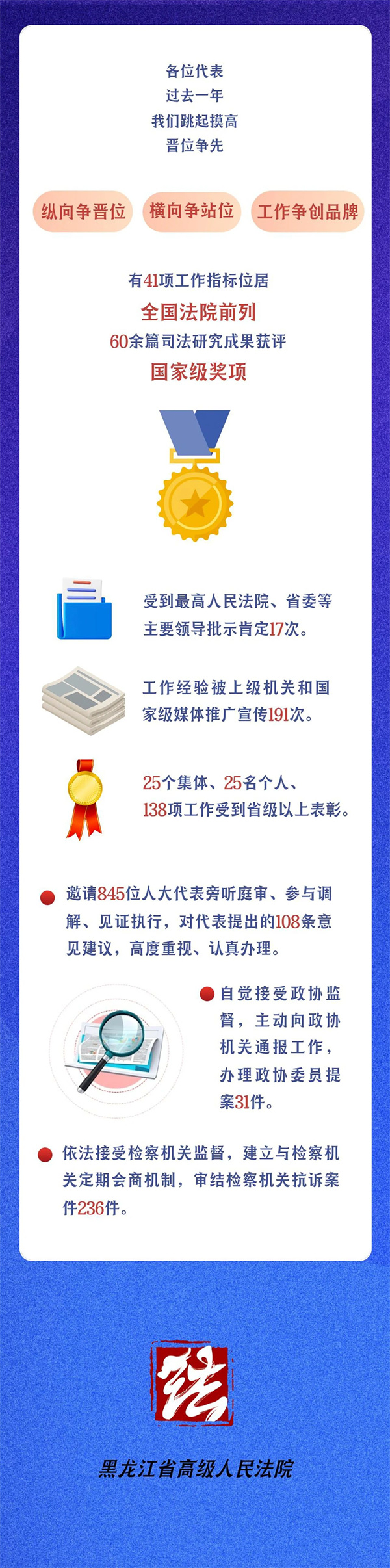 1月26日,黑龙江省高级人民法院院长党广锁在省第十四届人民代表大会第二次会议上作法院工作报告,过去这一年黑龙江法院交出了怎样的成绩?这张答卷,请您审阅。