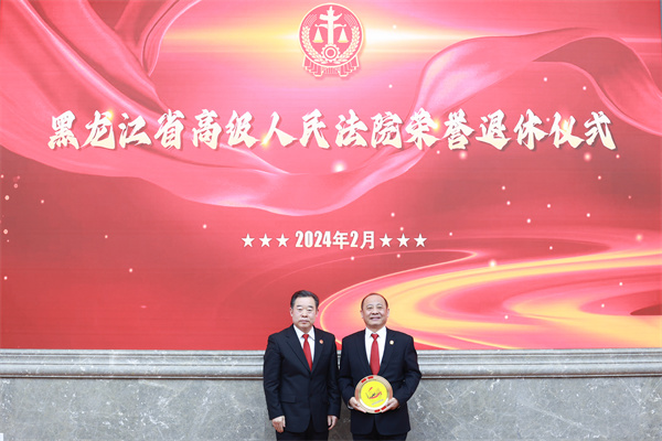 省法院党组副书记、常务副院长王春福主持荣誉退休仪式。省法院院领导,院机关相关部门负责同志及部分干警代表参加仪式。