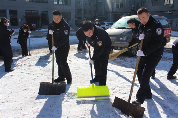 法警总队党支部开展“学雷锋”青年党员志愿献血和下沉社区清理庭院积雪服务活动。