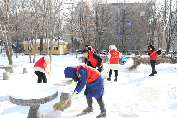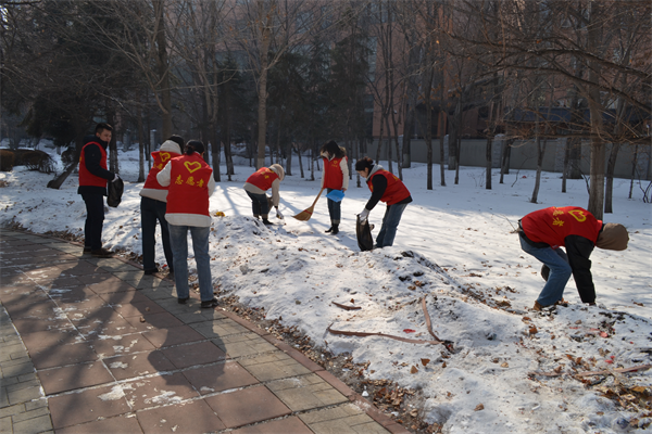民一庭与刑二庭、刑三庭党支部共赴农垦社区开展“传承雷锋精神”为社区清雪志愿服务活动。