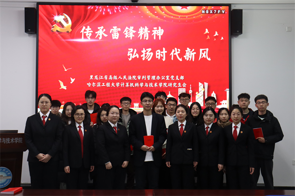 审管办党支部开展“传承雷锋精神 弘扬时代新风”志愿服务活动,向哈尔滨工程大学计算机科学与技术学院研究生代表宣传法律知识。