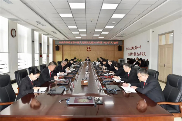 3月19日下午,齐齐哈尔中院召开党组(扩大)会议,传达学习贯彻习近平总书记在全国两会期间系列重要讲话精神和全国两会精神,认真贯彻张军院长在“人民法院大讲堂”第一场辅导报告上的讲话精神和党广锁院长在全省法院学习贯彻全国两会精神会议上的讲话精神,部署近期重点工作。齐齐哈尔中院党组书记、院长朱卫国主持会议并讲话。会议要求,要深化理论学习,提高政治站位;要忠实履职尽责,做实为大局服务;要树立“如我在诉”意识,做实为人民司法;要依法能动履职,服务振兴发展;要坚持人民民主,主动接受监督,为鹤城高质量发展、可持续振兴贡献全部司法力量。
