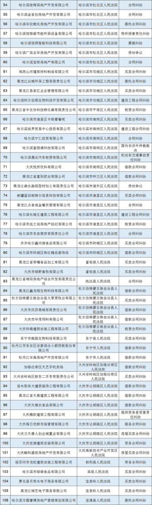 失信大曝光!2024年黑龙江高院第五批失信被执行人名单来了!本次失信曝光台共曝光106家失信企业,哪些企业被曝光?有没有你认识的企业?一起来看看吧!