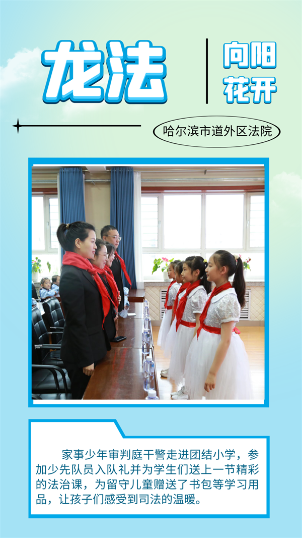 少年儿童是祖国的未来,是中华民族的希望。黑龙江法院能动履职,不断提高未成年人审判工作能力,维护未成年人合法权益,助推新时代未成年人审判工作高质量发展,当好未成年人保护的先行者、实践者、推动者。