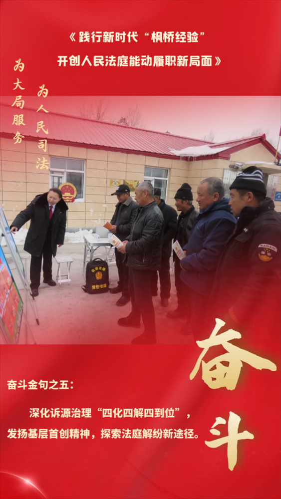 今日,持续关注“奋斗吧!”专栏之五,黑龙江法院践行新时代“枫桥经验”,开创人民法庭能动履职新局面。