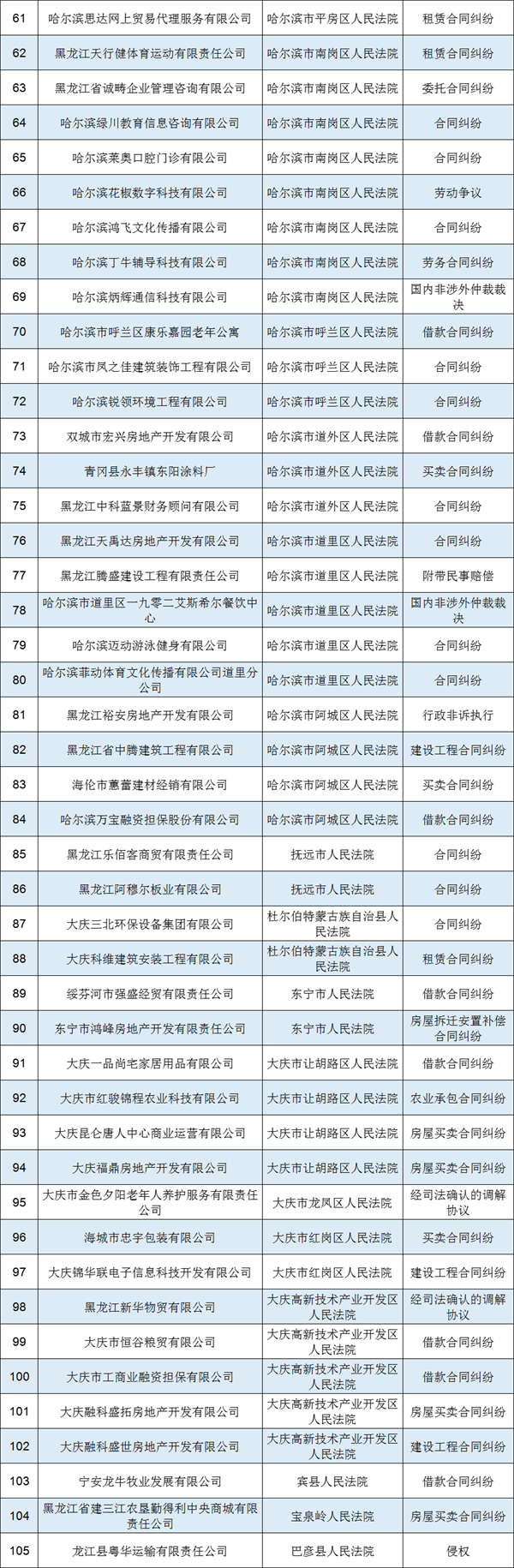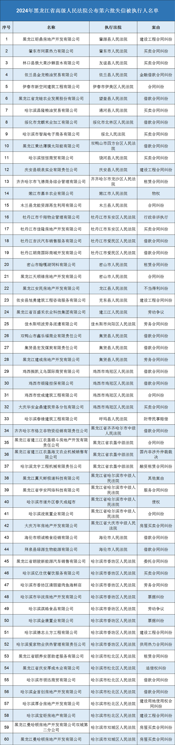 失信大曝光!2024年黑龙江高院第六批失信被执行人名单来了!本次失信曝光台共曝光105家失信企业,哪些企业被曝光?有没有你认识的企业?一起来看看吧!