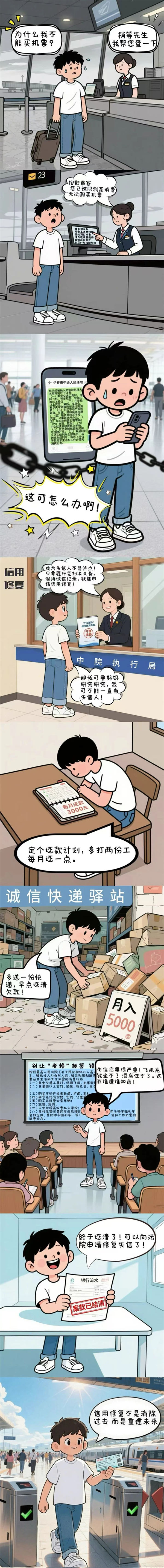 这些因失信陷入困境的场景是否让你悔不当初?别慌!信用不是“一次性消耗品”,当“失信阴霾”笼罩时法院也为你留了一扇 “修复之门”,今天我们用一组漫画带你看懂信用修复那些事儿。