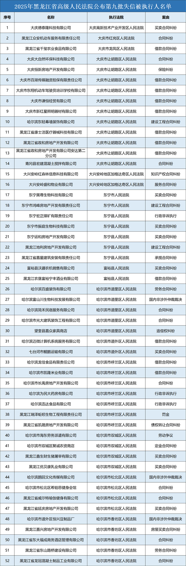 失信大曝光!2025年黑龙江高院第九批失信被执行人名单来了!