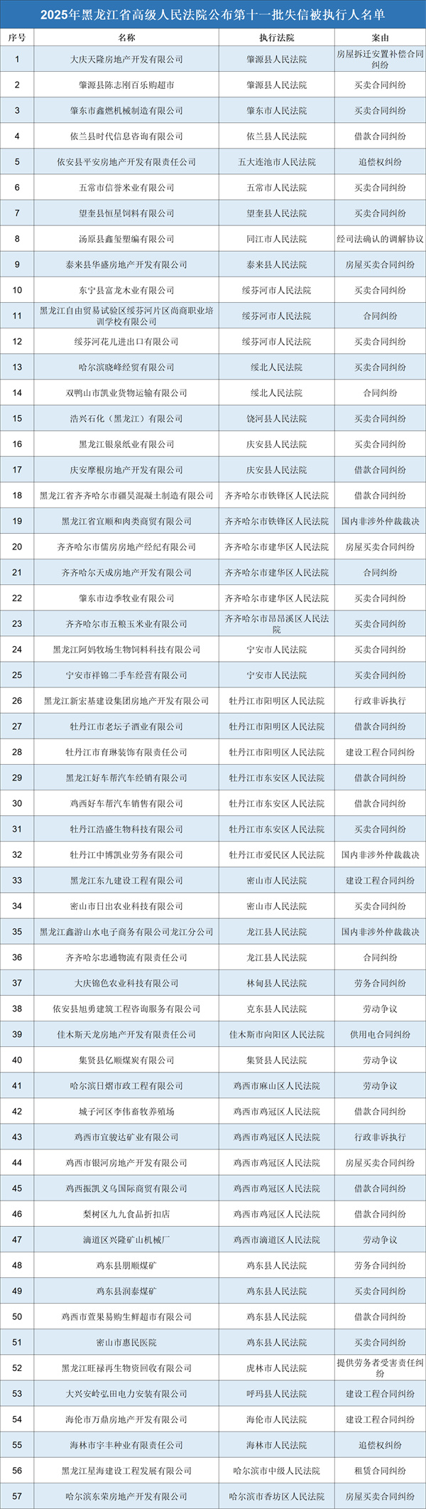 失信大曝光!2025年黑龙江高院第十一批失信被执行人名单来了!