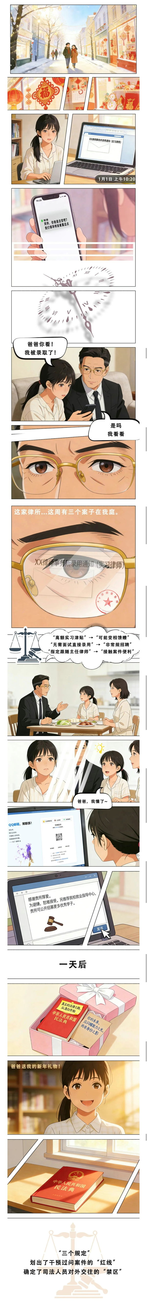 廉洁考验常以新面孔出现,当“机遇”敲响家门,瞄准的却是法官手中的天平,一份给子女的录用通知可能暗藏对权力的变相围猎,唯有家庭共同清醒才能守护职业清白,真正的未来应由能力照亮而非身份庇荫。
