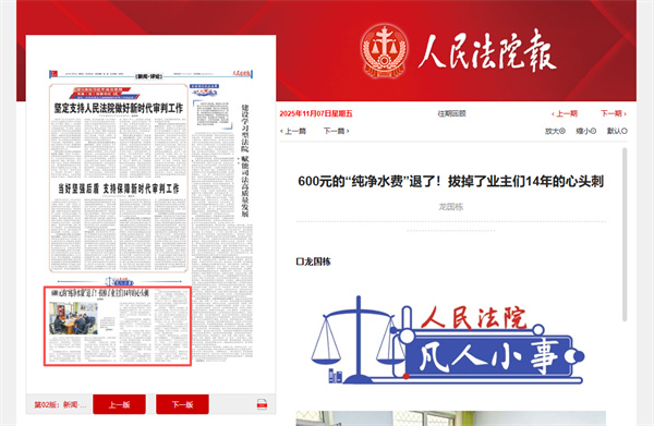 《人民法院报》报道佳木斯市郊区法院:600元的“纯净水费”退了 拔掉了业主们14年的..