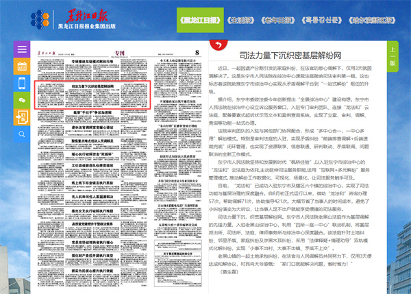《黑龙江日报》报道东宁市法院:司法力量下沉织密基层解纷网