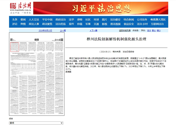 《法治日报》:桦川法院创新解纷机制强化源头治理