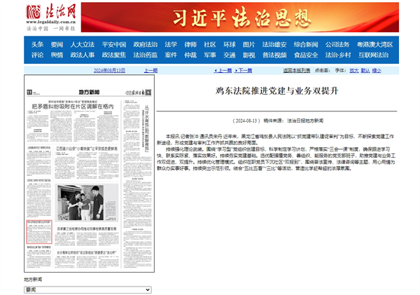 《法治日报》:鸡东法院推进党建与业务双提升