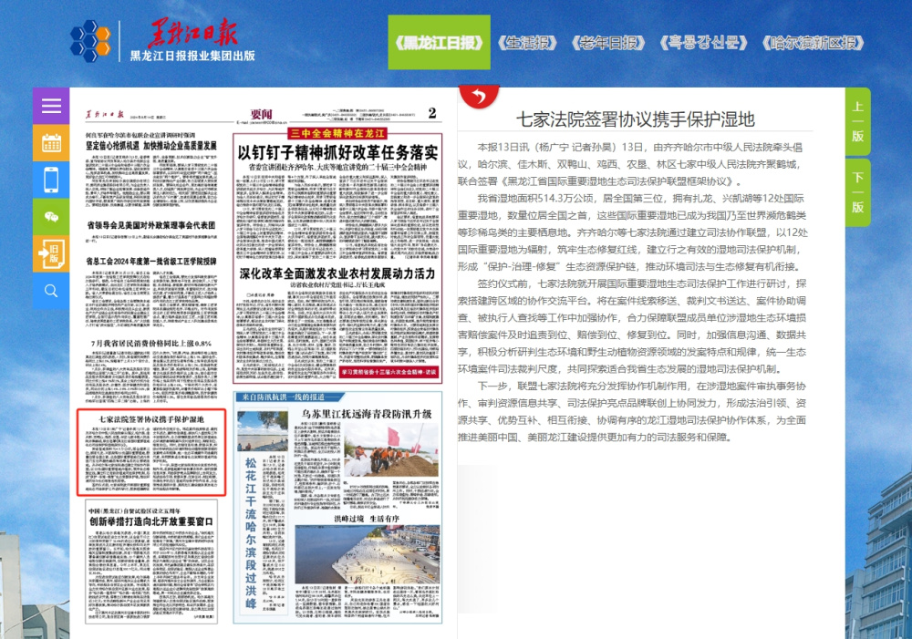 《黑龙江日报》:七家法院签署协议携手保护湿地