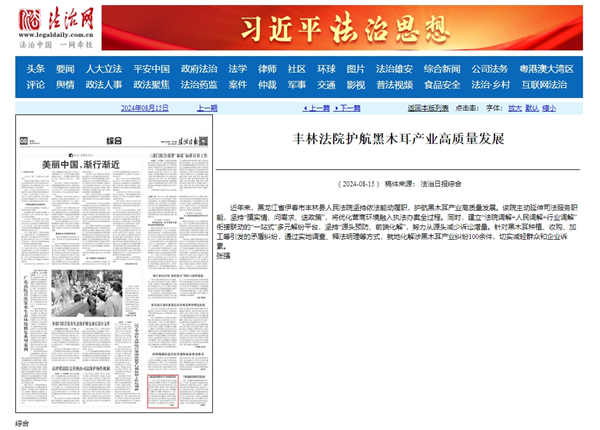 《法治日报》:丰林法院护航黑木耳产业高质量发展