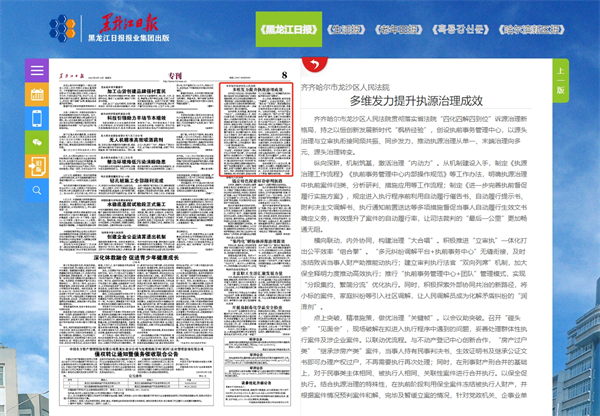 《黑龙江日报》:齐齐哈尔市龙沙区人民法院 多维发力提升执源治理成效
