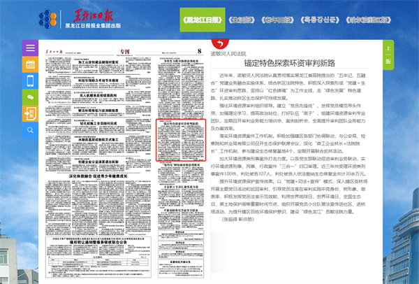 《黑龙江日报》:诺敏河人民法院 锚定特色探索环资审判新路