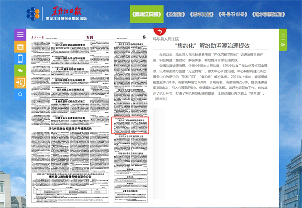 《黑龙江日报》:鸡东县人民法院 “集约化”解纷助源头治理提效