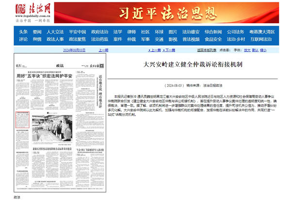 《法治日报》报道大兴安岭中院:大兴安岭建立健全仲裁诉讼衔接机制
