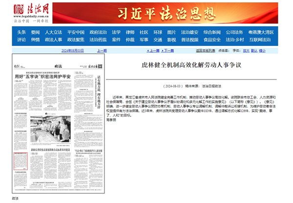《法治日报》:虎林健全机制高效化解劳动人事争议