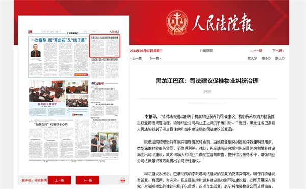 《人民法院报》:黑龙江巴彦 司法建议促推物业纠纷治理