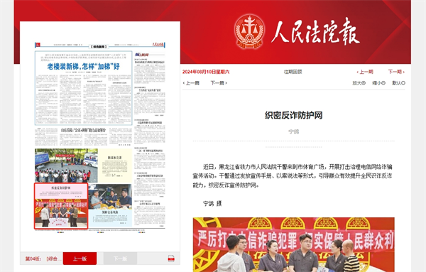 《人民法院报》报道铁力市法院:织密反诈防护网