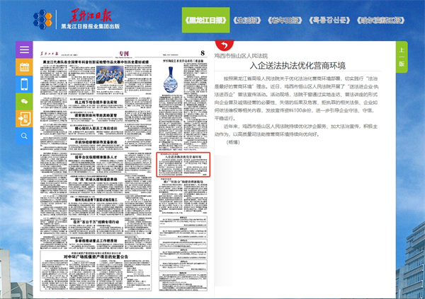 《黑龙江日报》:鸡西市恒山区人民法院 入企送法执法优化营商环境
