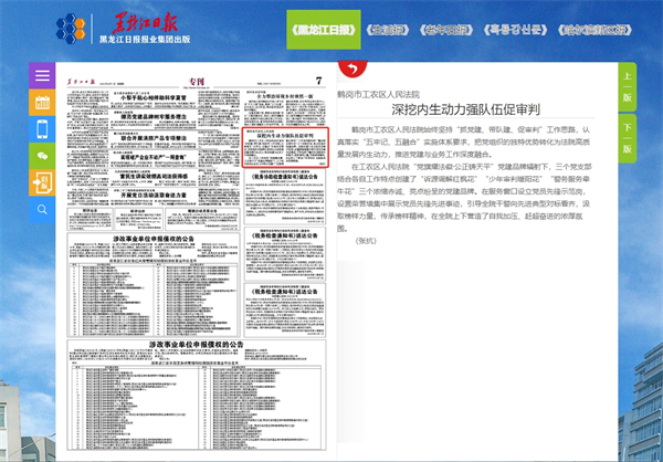 《黑龙江日报》:鹤岗市工农区人民法院 深挖内生动力强队伍促审判
