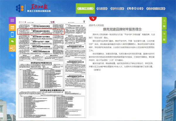 《黑龙江日报》:虎林市人民法院 擦亮党建品牌树牢服务理念