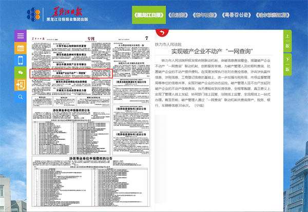 《黑龙江日报》:铁力市人民法院 实现破产企业不动产“一网查询”