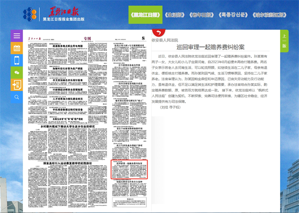 《黑龙江日报》:依安县人民法院 巡回审理一起赡养费纠纷案