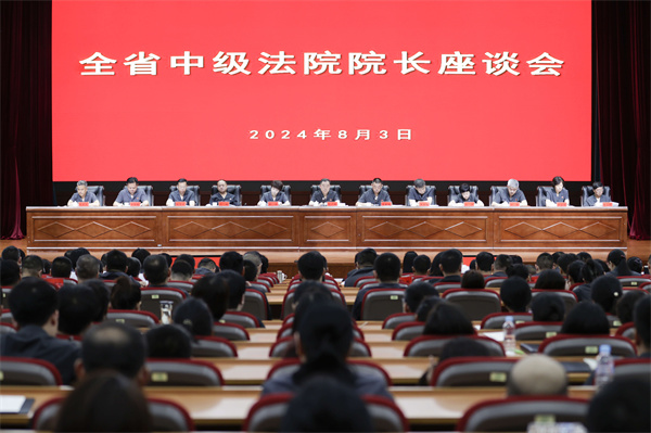 8月3日上午,黑龙江高院召开全省中级法院院长座谈会,深入学习贯彻党的二十届三中全会、全国大法官研讨班和省委十三届六次全会精神,总结工作成效,聚焦改革任务,部署重点工作。黑龙江高院党组书记、院长党广锁出席座谈并讲话。 全国人大代表邢云堂、陆晓琳、梁代华,省人大代表施佰芝、高广生及部分新闻媒体记者应邀参加座谈。 会议指出,年初以来,全省法院深入落实“一要二统三抓实”工作思路,锚定审判工作现代化,凝心聚力、奋勇拼搏,政治建设更加坚强有力,服务大局展现更大作为,融入治理成效更加彰显,审判管理更加精准科学,审判质效实现大..