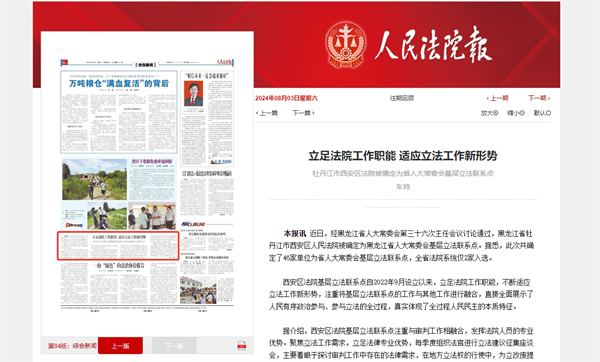 《人民法院报》:立足法院工作职能 适应立法工作新形势 牡丹江市西安区法院被确定..