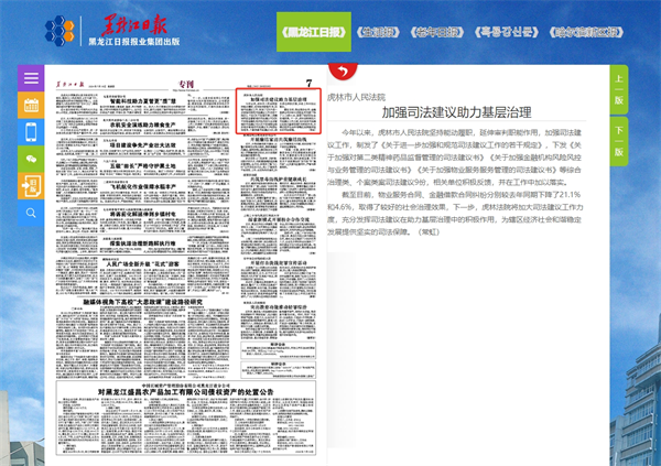 《黑龙江日报》:虎林市人民法院 加强司法建议助力基层治理