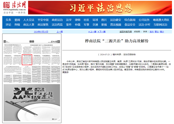 《法治日报》:桦南法院“三源共治”助力高效解纷