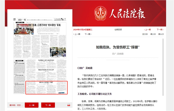 《人民法院报》:如我在执 为受伤职工“撑腰”