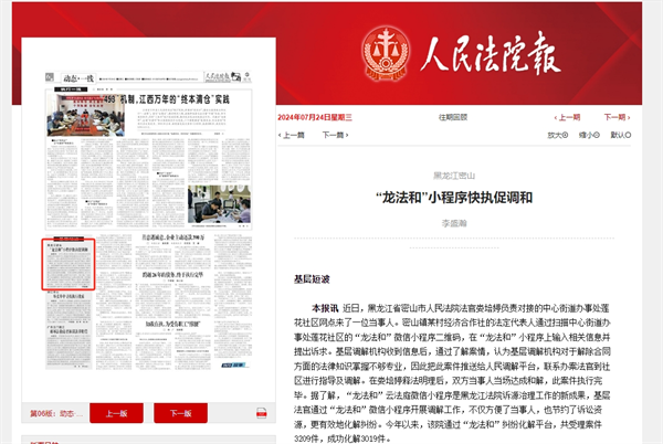 《人民法院报》报道密山法院:“龙法和”小程序快执促调和